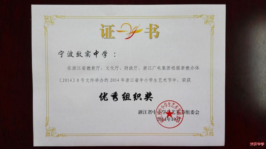 我校获2014浙江省中小学生艺术节优秀组织奖,男子群舞获二等奖