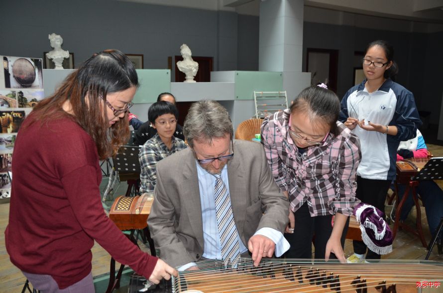 英国伍德豪斯中学外联部主任兼音乐老师Peter Lambert访问我校并与民乐团师生愉快交流