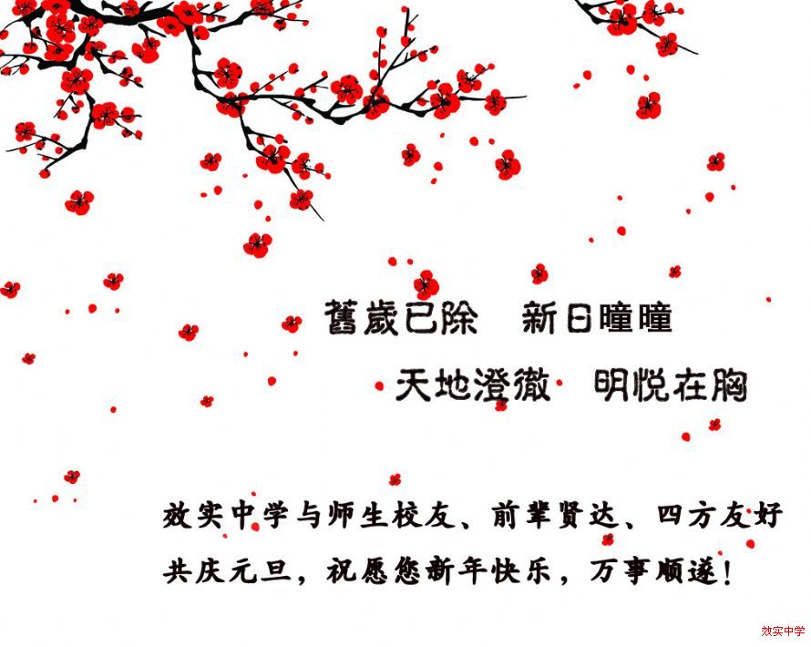 效实中学与师生校友、前辈贤达、四方友好共庆元旦,祝愿新年快乐,万事顺遂!