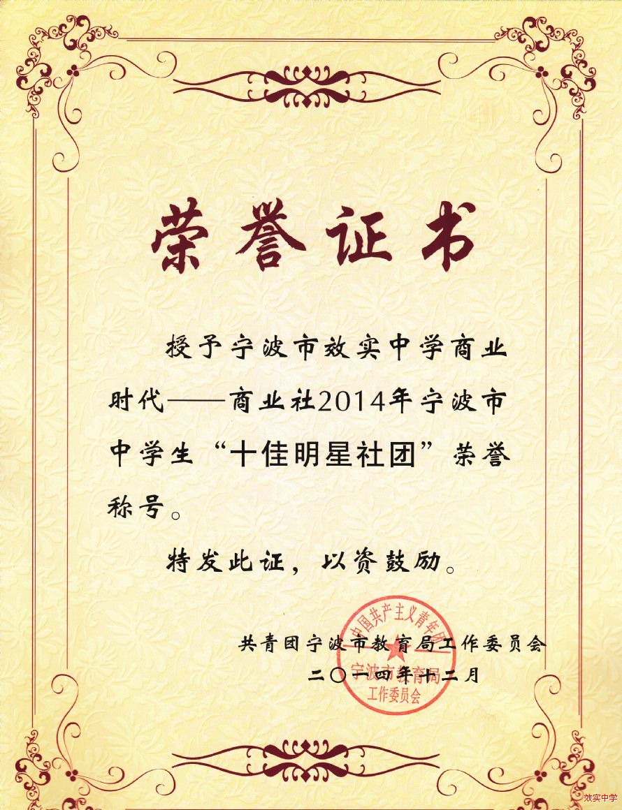商业时代商业社获评2014年宁波市中学生“十佳明星社团”