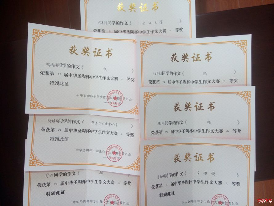 在一年一度的“中华圣陶杯”中学生作文大赛中,我校同学积极参加,取得优异成绩。