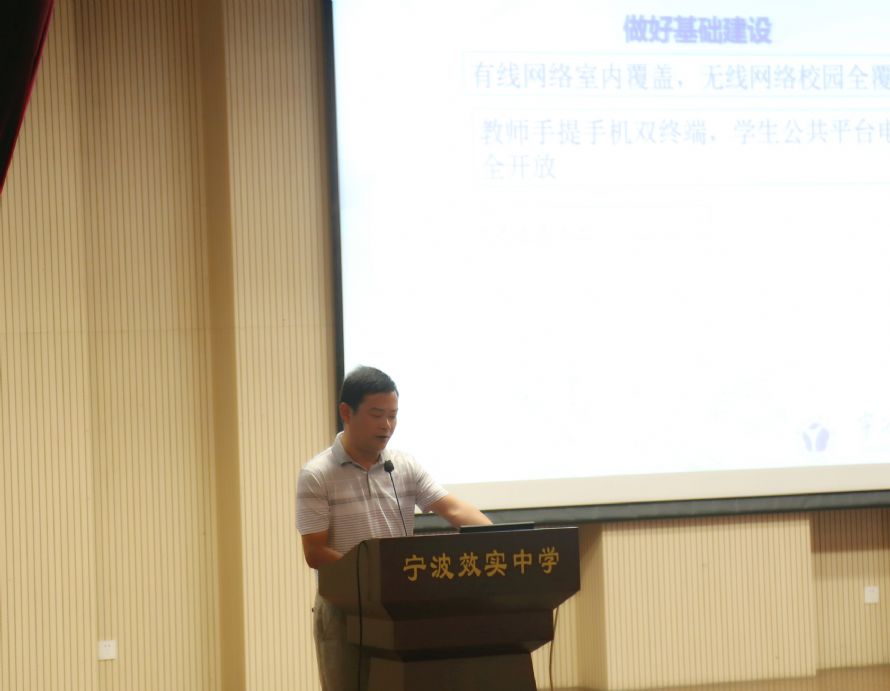 2015年9月13日上午,效实中学承办了基础教育分论坛,向全国200余位教育专家和领导展示我校智慧教育成果。学校以“需求”为导向,求实务实,目前已经自主开发和合作开发了几十个应用子系统整合到学校网站中。目前我校的开发的网站应用有三大块分别是“教、学、管”, “教”方面有网上阅卷系统、网上题库系统、网上作业发布系统、网上答疑系统(DD90)、网上授课系统(微课)、网上学生成绩分析系统、学生成长性系统评价(赛思系统)、教学资源共享系统(FTP)、云录播;“学”方面有网上答疑系统(DD90)、网上学习系统(微课、云录播)、学生个人成绩查询、自主选课系统、自主招生报名系统、心理咨询;“管”方面有课堂出勤查询、家校联系单(个性化)、教师数据互联、无线网管理平台、学生晚自习网络管理、短信平台(发送,来访提醒,快递提醒,学生提问提醒,会议提醒,气象空气污染提醒,网上报修,校长信箱来信提醒,社区建言提醒,文件发送与接收提醒)、RFID考勤系统、门禁系统、电子屏管理系统、网上调查系统、校园监控系统、校园透明厨房、校园安全预警系统。