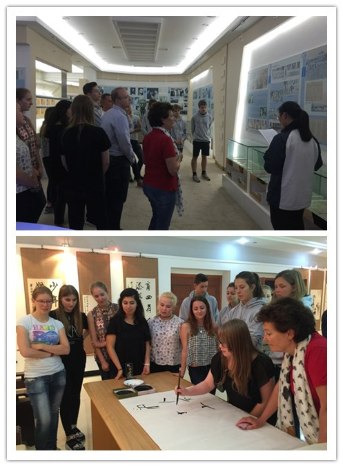 交流期间,为使德国学生融入宁波本土文化,让我校学生有机会与国外学生彼此深入了解,15位德国学生均寄宿在我校学生家里,与他们一起上下学。短短七天的行程,可谓动静结合,内外联动。在校内,国际中心特意安排了富有中国传统特色的拓展课程如书法课、脸谱绘画课、基础中文课、宁波人文地理课、太极课等。此外,行程安排里还留出几个课时让他们有机会与友伴在同一个课堂听课,感受中国式教学。他们与高一IB同学联谊互动,共度欢乐时光。同时,他们走出校园,到访万安社区,了解宁波普通居民的生活居住环境;参观天一阁,探索中国最古老的藏书楼;走进博物馆,全方位感受宁波的历史人文底蕴。他们还前往红牡丹书画院体验中国山水画;在宁波大学学生的引导下参观宁波市最高学府;鼓楼、月湖公园留下了他们活泼的身影和朗朗的笑声。周五晚上,他们与住家友伴家长一起在学校一号食堂包饺子,分享相聚相识的喜悦。临走时,该校国际交流处负责老师Daggi再次热烈邀请我校师生明年访问亚琛,访问查理曼大帝中学。