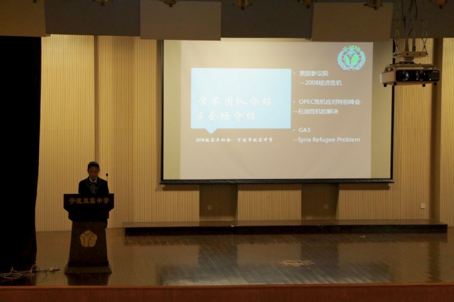 2016年1月2号至3号,来自效实、宁中、镇海、鄞州、二中、宁外、北仑、慈溪等中学共一百五十五名代表与主席齐聚效实园,共同开启模联之旅。本次模联大会一共设计了三个会场, 分别是中文会的2008经济危机、1990石油危机和英文GA3委员会的the Refugee Problem in Syria。2008经济危机会议中,我校模联首次和商社联动,会议中出台的各项政策都以局势更新的形式影响商赛场,使代表在会议讨论和各项决策中更加谨慎;1990石油危机,三个内阁的联动,每个内阁的一举一动都会被其他内阁密切关注;难民问题,炙手可热,代表们不仅需要克服语言上的障碍,更面临着最新国际时局的未知考验。主新闻中心(MPC)分派记者到各会场,通过撰写稿件,编印报纸,在会议间期对代表进行专访以及召开新闻发布会的形式,推动局势更新和会议发展。