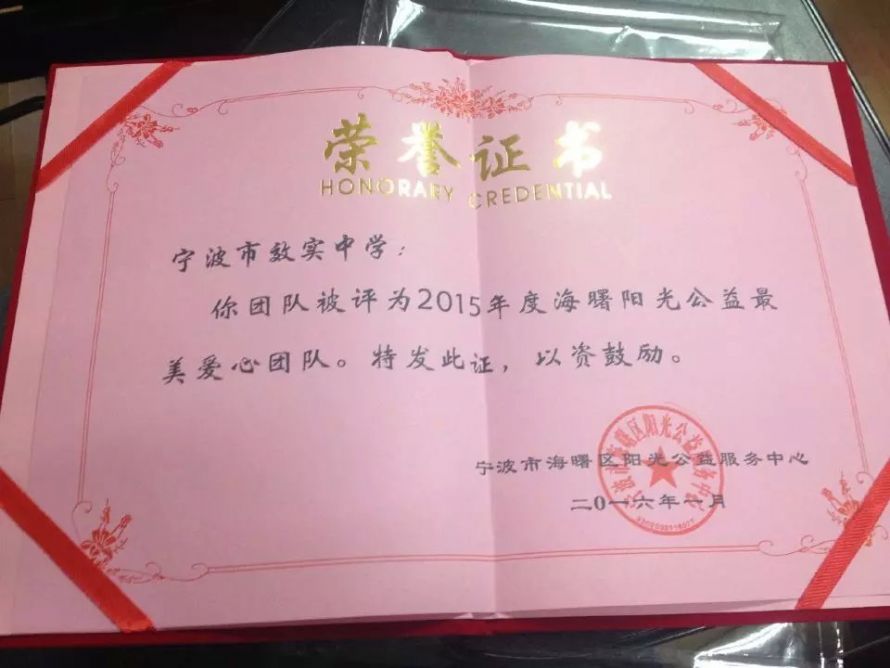 学校学生会在2015年主办的多次公益活动得到了海曙阳光公益组织、社会各界人士的认可,获得最美爱心团队称号。