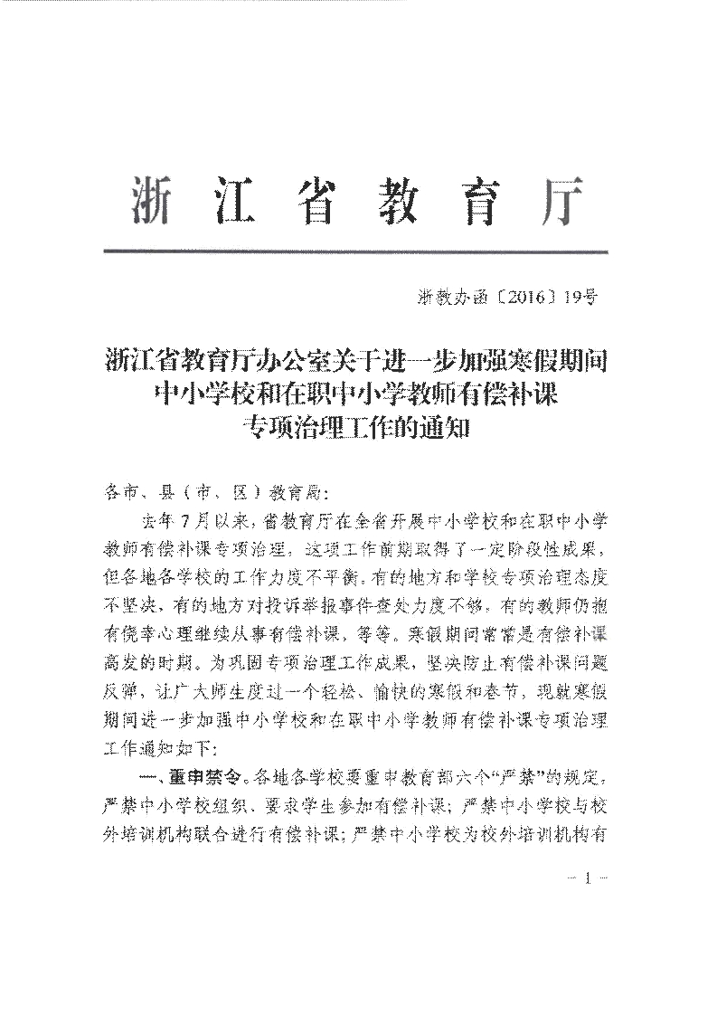关于进一步加强寒假期间中小学校和在职中小学教师有偿补课专项治理工作的通知