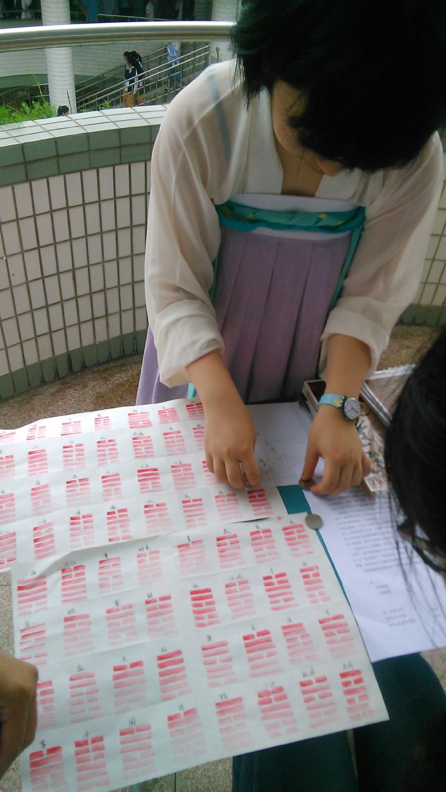 教学楼三楼西侧的走廊中,茶馆气氛十足的银杏史社别具一格的算卦活动受到来往同学的青睐。而另一侧电影社怀旧与潮流并重的主题明信片,文学社才女手写的古风书签与典雅简约的信纸与多肉社的撩妹多肉交相辉映,吸引了众多目光。而在四楼的走廊中摆放着逼真模型的航模社与球拍定价良心的羽毛球社的销售人员正卖力演示,招徕着周围同学。同时,心理社、网球社、机器人社与环保社的义卖也如火如荼地开展。
