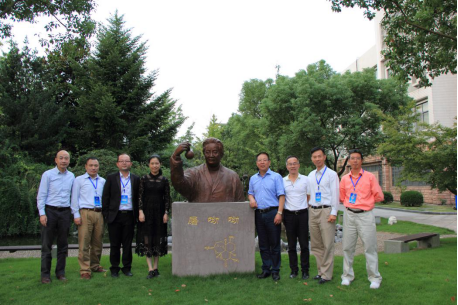 上海校友会校友代表与我校领导在屠呦呦像前合影