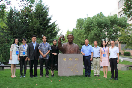 北京校友会校友代表与我校领导在屠呦呦像前合影