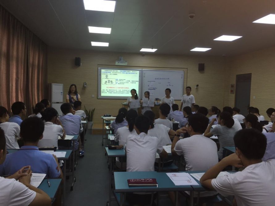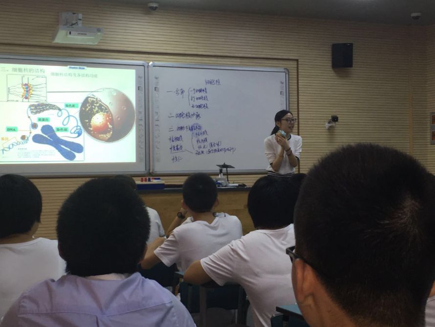 周姗姗老师展示了“细胞核”这节课。作为效实生物组的新生力量,周老师教学基本功扎实,亲和力强。在本节课中,以班级各同学和班主任对班级所起的作用类比细胞中各结构的功能,引入细胞核的教学,使学生对细胞核的功能有了初步的认识。随后的教学过程中运用了资料分析、模型建构、动画观察、比较等多种教学策略突破教学重难点细胞核的结构和功能。整堂课学生讨论热烈、积极参与、课堂氛围和谐。