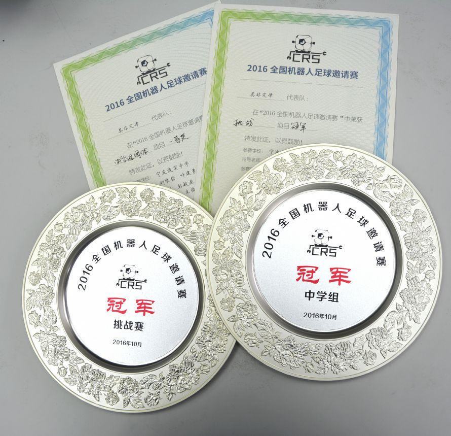 20161023日结束的“2016全国机器人足球邀请赛”竞赛中,我校代表队莫非定律竞赛中获得中学组冠军,并在挑战赛中,最终以3:2打败浙江水利水电学院一队获得总冠军荣获双冠军队长杨彪赛后表示我们的决心就像我们的队名一样,不管可能性有多小,它总会化不可能为可能,之所以莫非是因为不、没有的意思,是一个双重否定句,能险胜大学生我们感到很幸运,他们在编程和软件方面比我们更加专业,我们则只能利用课余时间把功夫在脚本上。