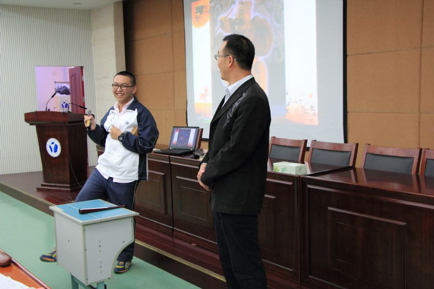 《评叙说表 书中乾坤》这节课,先由清代王国维先生之“一代有一代之文学”说导入课堂,引出评书是表现明清小说的重要的文学样式,以此来突出评书的重要地位。然后以PPT的方式呈现评书的概念,伏锐老师用生动的语言阐释了评书的概念要点及悠久历史。再结合说书家剧照的方式,介绍了单田芳、连丽如和袁阔成这三位享誉书坛说书家的卓然成就。在这一环节,伏锐老师让学生上台表演了评书,在充满笑声的课堂中,学生初次体验与感受了评书的快乐和妙处。之后,伏锐老师通过让学生自读《三国演义·草船借箭》片段和听老师表演相关片段的评书的方式进行比较,评书与原小说情节、语言等方面的不同点,并总结概括评书所运用的技巧,然后以解说评书特点的词《西江月》来提升学生对评书的认知和看法。这一环节紧扣语文学科学习的特点和要求展开,让学生在具体例子的比较感受中体验了语言的魅力和评书表演的妙处,也提升了学生对评书这一文学样式的理性认知;最后,课堂成为了学生表演评书的实践舞台,学生在伏锐老师认真细致地示范下,演绎了《西游记·人参果》这一故事,又把课堂推向了一个新的高潮。总之,这节选修课,伏锐老师上的专业而投入,学生听的愉快而专注,临近分别,学生仍恋恋不舍!
