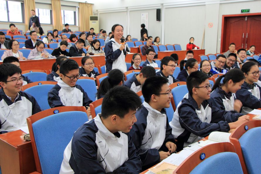 2016111日,义乌中学伏锐老师在宁波效实中学328报告厅和高一(2)班学生一起演绎了一节幽默诙谐、精彩纷呈的语文选修课——《评叙说表书中乾坤》。整节课在伏锐老师趣味横生的评书表演中,在贴近学生阅读与生活的教学内容的展开中,在独特而多样的教学方式的呈现中,在欢快而愉悦的教学氛围里,在此起彼伏的掌声和笑声中,课堂铃声悠悠响起,学生和听课的老师仍旧沉浸于美妙的课堂中。