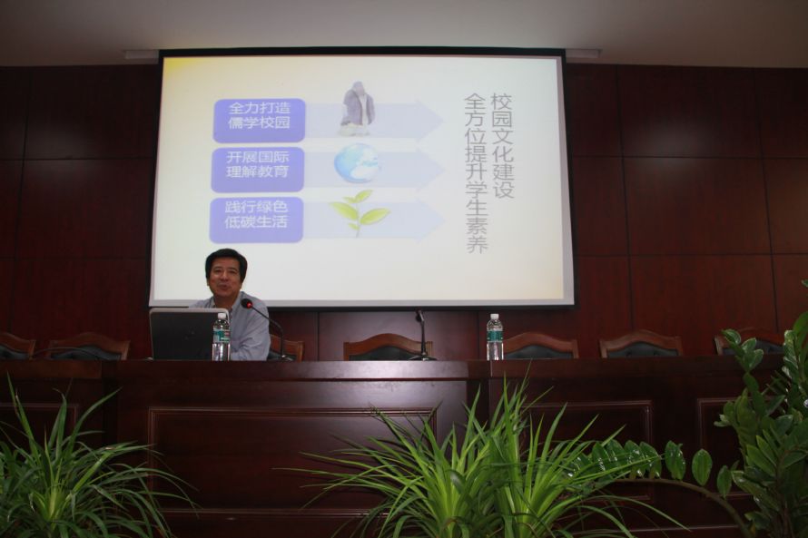 在胡建军书记做完致谢发言后,衢二中潘志强校长介绍了学校的校园文化建设:全力打造儒学校园、开展国际理解教育、践行绿色低碳生活,依托市创新人才培养基地、全国首批中小学心理健康教育特色学校,以滋养学生儒雅的性情、开阔的视野、环保的理念、创新的精神和健康的心态。其后,周旭荣老师分享了新高考背景下班级管理的经验,就自习安排、教学评价等实际存在的问题与我校班主任展开了交流。最后,朱久良老师以学生心理健康教育及危机干预为话题,展示了衢二中独特的心育实践,如设置心理辅导课程、开发各类主题活动、绘制心理漫画,以使学校的心理健康教育更具发展性、介入性和处理性。