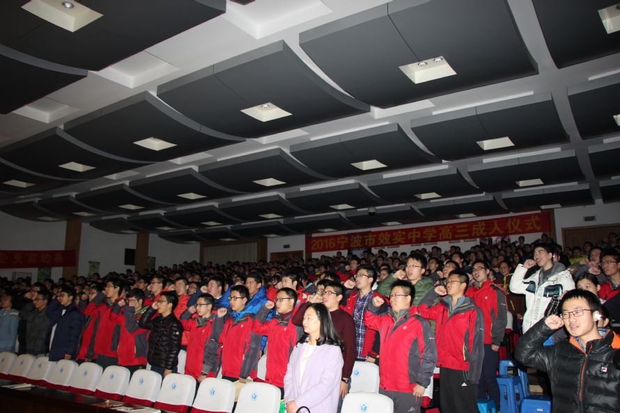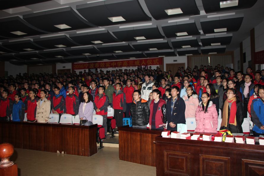 2016年12月16日,宁波效实中学高三年级“世界那么大,我们在路上”十八岁成人礼在中山厅拉开序幕。同学们共同见证最为宝贵的十八岁。在这个收获的季节里,青春的生命正迎来一个崭新的天地,将要走进效实园高三同学的行列里。