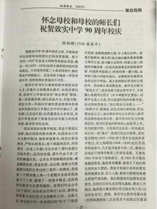 刊登在总第四期《效实校友》上的徐祖耀院士贺母校90周年的回忆文章