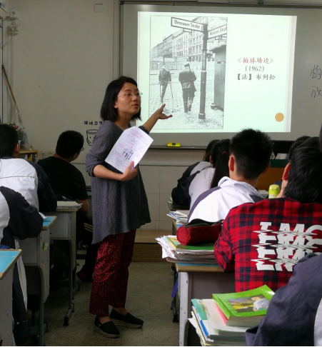 5月12日上午,朱俏老师在高二(9)班执教《图片:表达世界的语言——以新闻图片的“构图”为例》。导入环节,朱老师让学生从两幅图中选择其一作为叙利亚战争的配图,在选择、探究的过程中引入本堂课的主题“构图技巧”。接着,朱老师引导学生从“细节内容”和“形式技巧”两个角度,分别欣赏新闻图片《柏林墙边》和《织网》,具体感知了图片的主题思想及其艺术美感。