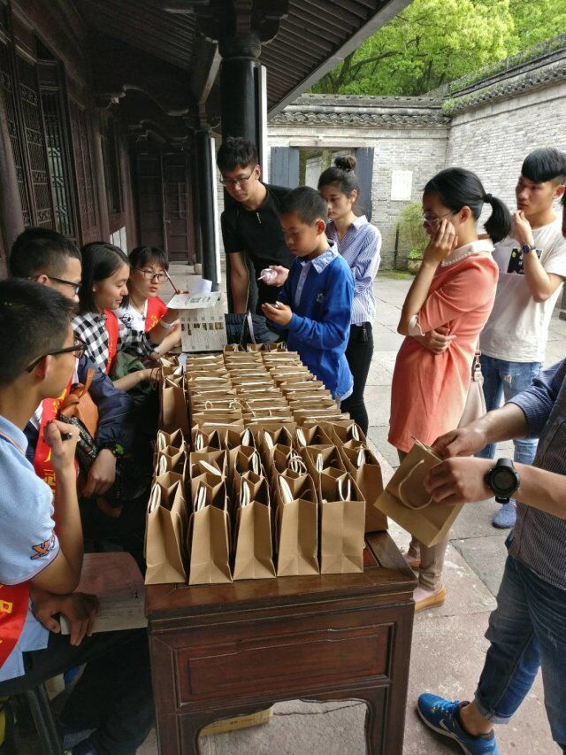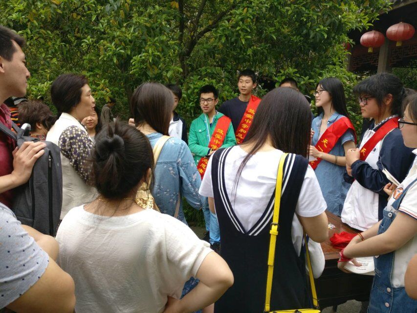 参加这次活动的,除了来自四海八方的游客,当然是我们的志愿者们了。⠼/span>不仅仅是志愿队的同学们,来自各班的其他几十位同学也牺牲了假期的休息时间,参与到我们的活动中。五月的天一阁,榴花绽放,安静地展现她的风采,而在天一阁中的每个人,仿佛是一片片鲜嫩的绿叶,印衬着天一阁的美丽。但我们也是红花,大红色的志愿者绶带让我们成为天一阁一道亮眼的风景。