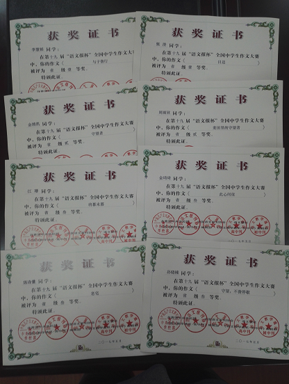 第十九届“语文报杯”全国中学生作文大赛高一、高二获奖名单公布,我校学生再获佳绩,总计44人获奖,名单如下: