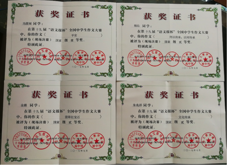 我校学子在第十九届“语文报杯”作文大赛中再创佳绩