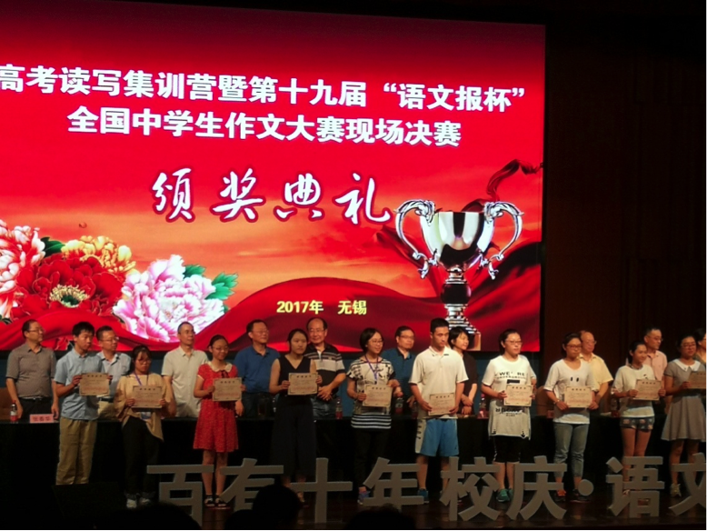 在有105万余名选手激烈角逐的第十九届“语文报杯”全国中学生作文大赛(高中组)初赛中,我校高一的杨沁,高二的冯筱雨、金璐、朱兆祥四位学生顺利入围“语文报杯”作文大赛的现场决赛。728日,在语文组张璇老师的带领下,一行人前往江苏无锡参加这次比赛。