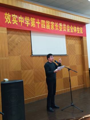 2017年12月10日,效实中学第十四届家长委员会全体会议在教工活动中心召开,所有校级领导、政教教务后勤等部门中层负责人、各班家委会主任、各年级组长参加了会议。会议由政教处主任王甬龙老师主持,裘建浩校长、胡建军书记、黄荣生副校长、夏炳副校长、孙立副校长就学校工作及家长关心的问题进行了汇报和回复。会议确定了校第十四届家长委员会委员名单,讨论并通过第十四届家长委员会常委会名单;会议期间,家长与学校就学校发展、学校管理、学生教育等问题进行了热烈的座谈;第十四届家长委员会常委会第一次会议就效实中学第三届“学生心中最美教师”评选工作和校服改进方案进行了商议。