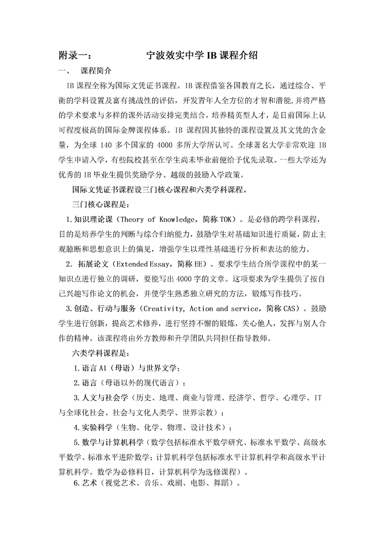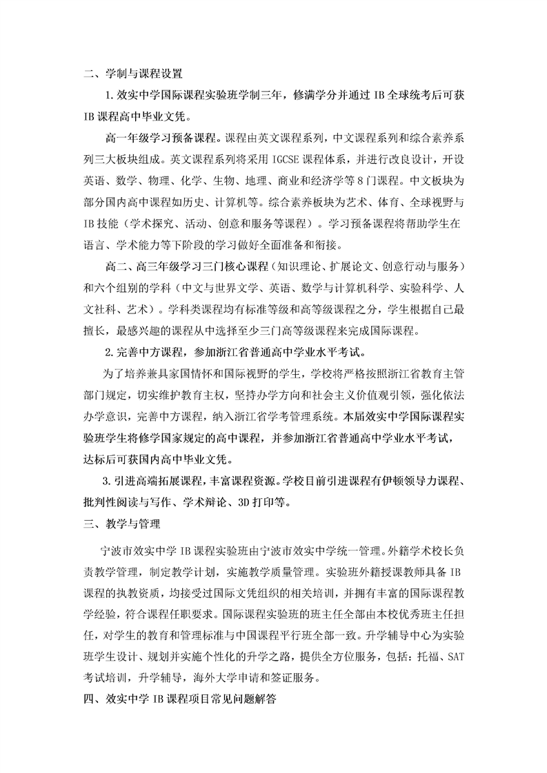 2017年宁波效实中学IB课程实验班招生简章