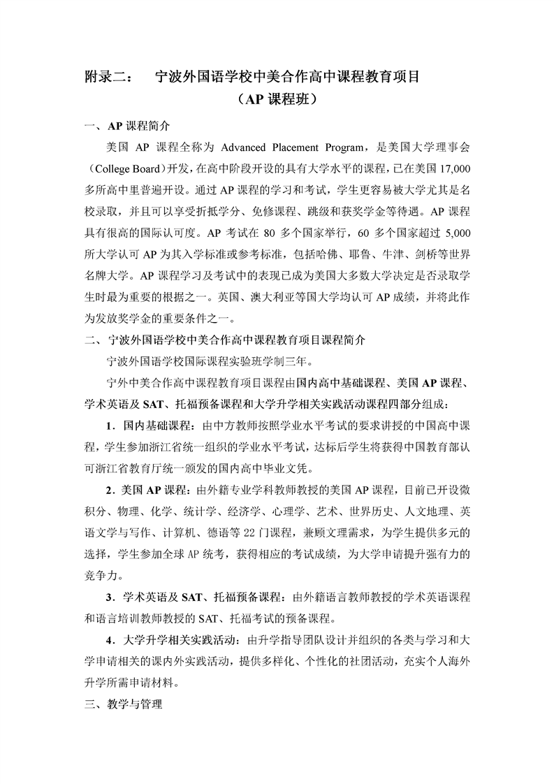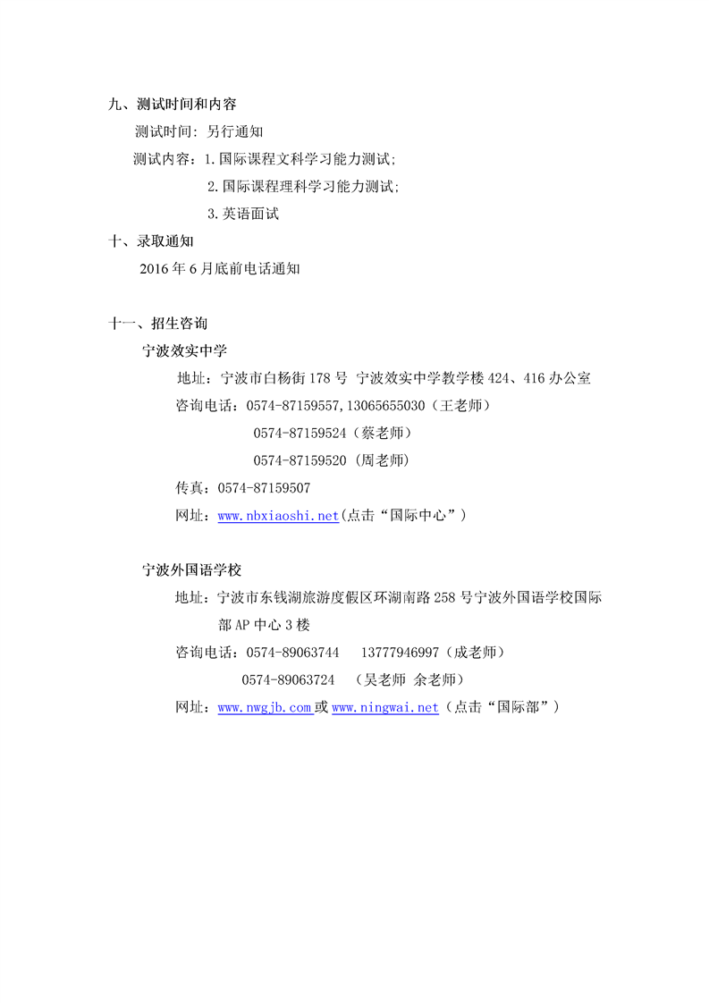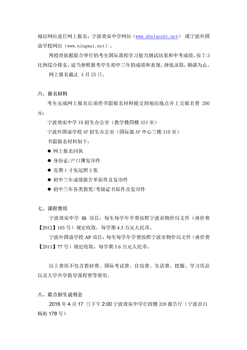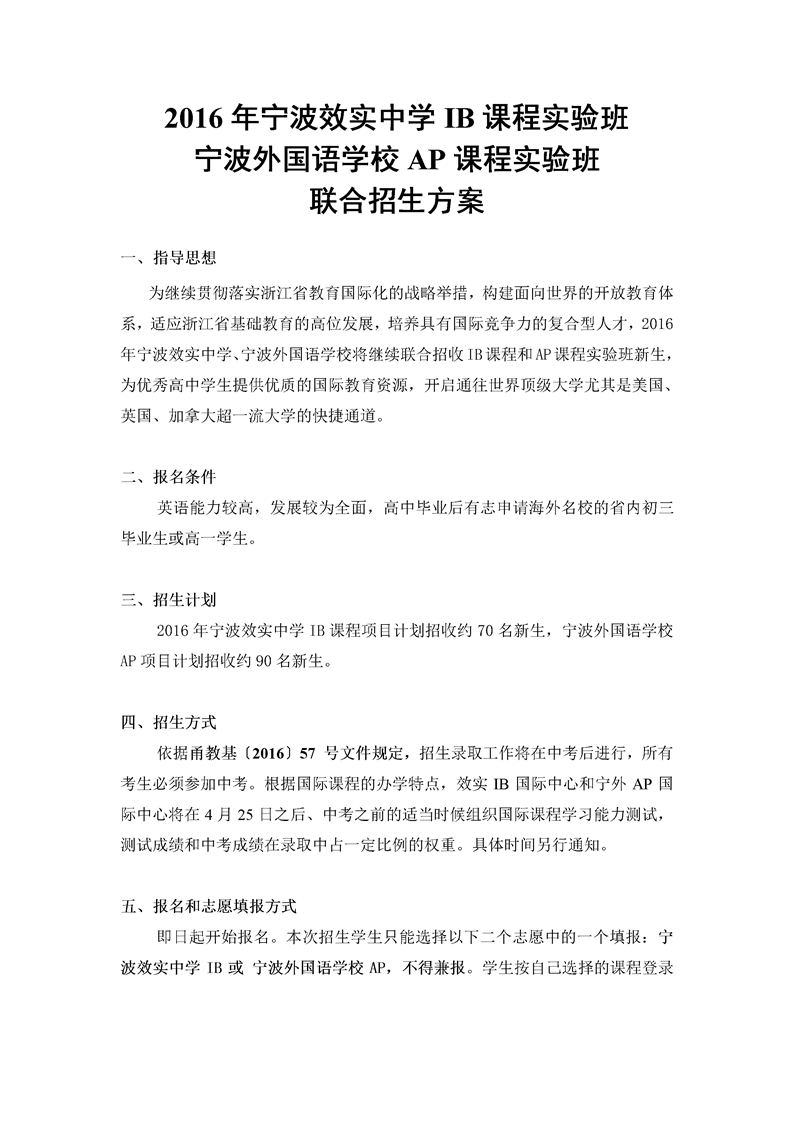 2016年宁波效实中学IB课程实验班和宁外AP中心联合招生方案