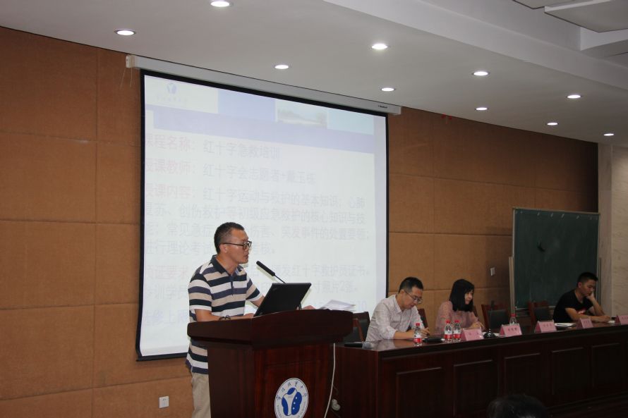 大会首先由校医茅吉荃为全体师生进行了急救知识的培训,现场进行了急救技能的操作演示。之后,林佩君老师代表原海航部给全体同学进行了动员讲话,林老师希望海航班的同学们在效实优良的文化氛围中,带着比同龄人更高的要求,茁壮成长。林老师说:“你们的一言一行都直接影响到了整个海航人的素养和浙江省海军航空班的口碑。”在海航班的管理整体完全纳入学校统一管理之后,刘才华老师对海航班的行为规范管理作出了详细、明确的解读。孙立副校长代表学校对海航班的同学提出了总体要求,孙校长结合今年暑期海军航空大学训练营的经历,要求海航的同学要以学员、海航学员的高标准来严格要求自己,要在学校中体现出军人学员的气质特点,体现出海航班的特色。最后,赴海军航空大学参加夏令营的学员们分别上台发表了自己的感受进而体会。
