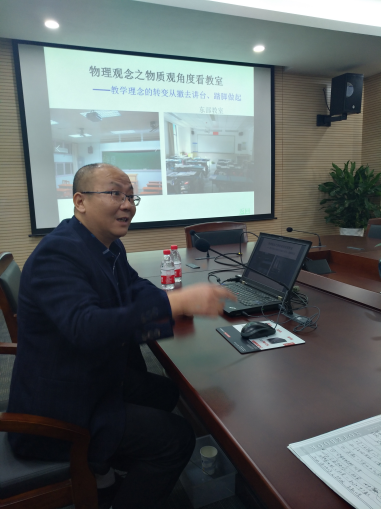 11月22日下午,特级教师邬志林老师作了以“物理视角看课堂”为主题的讲座。邬老师分别从物质观、时空观、相互作用三个物理角度,谈了对教室环境变迁、师生关系以及教学过程的理解。同时,邬老师还运用物理学中的熵增原理巧妙阐述了班级管理的艺术,提出班级建设除了外在约束,更重要的是找到集体的共性以增强凝聚力。讲座中,邬老师结合校园生活实例,妙语连珠,风趣幽默。聆听讲座的老师们感觉到邬老师独到的课堂解读非常具有启发性,收获颇丰。