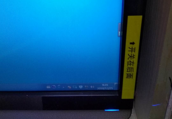 接上电源适配器通上电后,按下电源键即可开机。开机电源键在终端右下角的背面,大概位置在箭头所指方向后面。