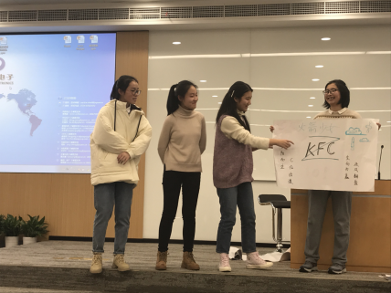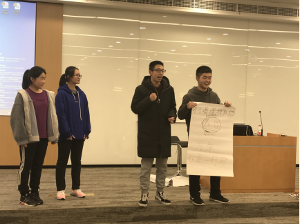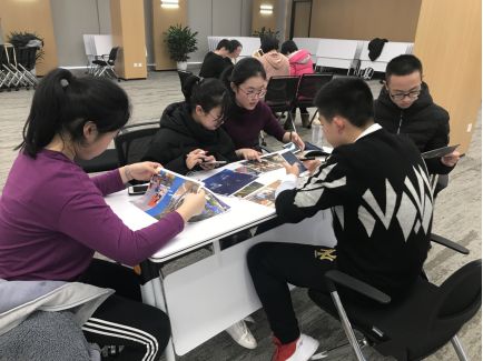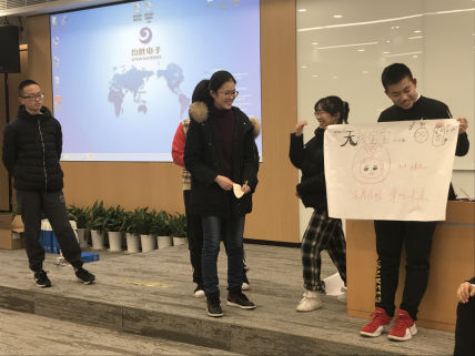 接着,欢乐的团建活动正式开始。在“校长”风趣幽默的话语声中,同学们各展身手,为自己的小组贡献出一分自己的力量。绘画讲演、唱歌拉票、填字游戏、手绘T恤……建队的最开始,大家也许在logo、slogan和团队理念方面都有分歧,可我们终会渐渐懂得,形成团队的过程就是不断解决冲突,最后融合的过程。“无线宝宝”队队长王晨侃说:“我看到谢蕊为团队T恤画多啦A梦的认真的神情,看到王嘉琪为团队填空得分时的紧张;我看到史可协调组内同学的工作,努力付出,看到袁心仪书写英文单词时的专注;我看到陶蒙云默默为小组借来必需的水彩笔。”是的,这一切的一切,都是大家在平常的学习生活中不曾学到的,每个人都将悄悄地珍藏在心里,这个像多啦A梦的神奇的口袋里。或许,今天的经历会在每个同学心中生根发芽,在不远的未来开出难以预料的绝美的花朵!