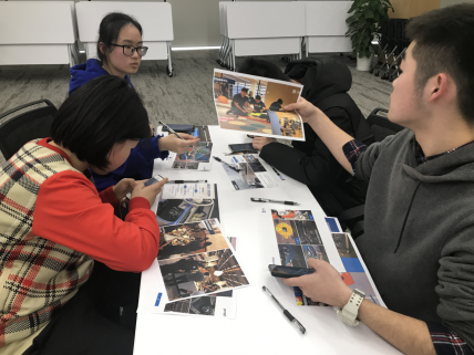 下午,执委与干事们被分为各个小组,进行不同任务的职业分工。比如智能互联的五人小组,她们在人力资源部小钟老师的带领下来到了开发和测试部门,老师的“迎接礼”——一份IQ试卷还着实令人大吃一惊。大家参观了四层:长方形结构的平层中间是众多会议室,四周均为设计师们的办公桌,如后花园般的露天平台、精致的茶水间、小型图书馆、精密测试实验室……严谨而不失美感的办公楼充分展现出了这家公司的专业,也在她们心中勾勒出了理想工作环境的美好蓝图。