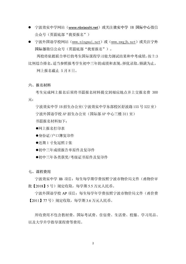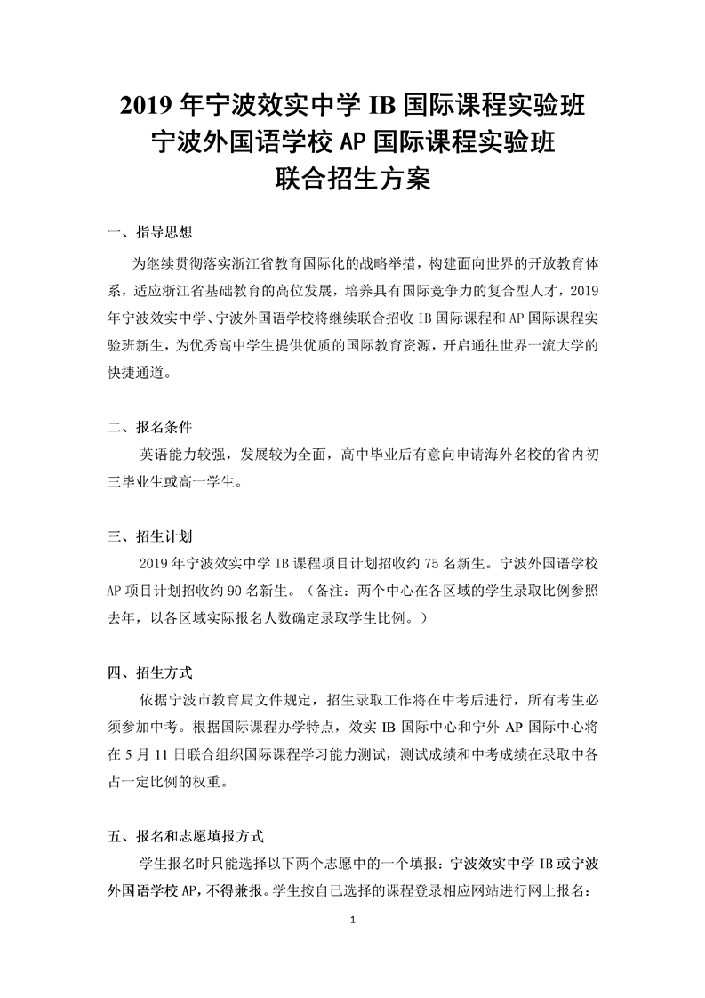 2019年宁波效实中学IB课程实验班宁波外国语学校AP课程实验班联合招生方案.pdf