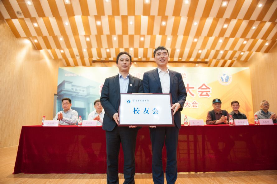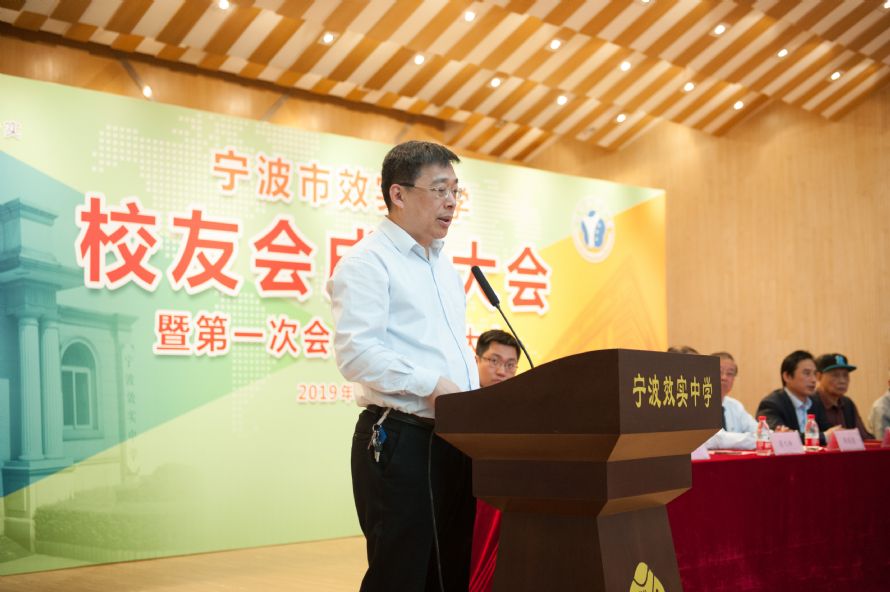 宁波市教育局党委委员、巡视员傅雪波出席会议并讲话,又隆重地向会长夏炳授予校友会牌匾。校领导裘建浩、胡建军、张悦、黄荣生等特邀列席了会议,新任会长夏炳在大会上做了表态性发言。