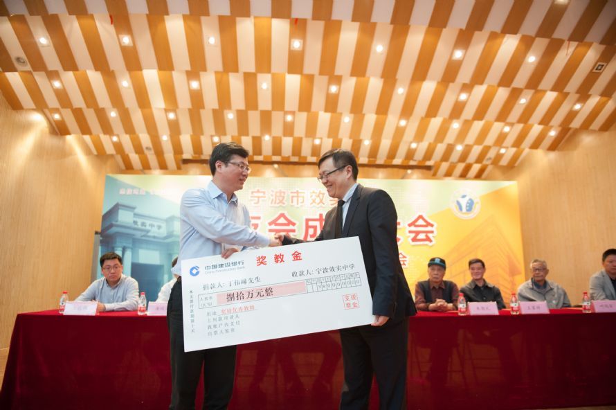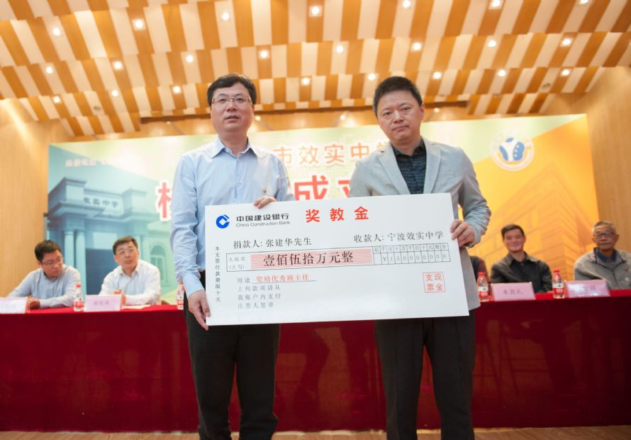会上,裘建浩校长还接受了张建华、丁伟峰等两位校友给母校的定向捐赠共230万元,捐款将用于表彰奖励效实中学优秀班主任和优秀教师等。