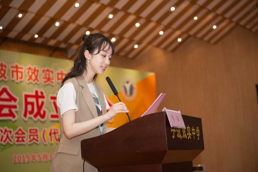 大会在壮严的国歌声中正式开幕,校党政办主任陈强主持会议,并依照会议的多项议程依次进行。大会首先由沈倩校友宣读了宁波市民政局关于同意成立宁波市效实中学校友会的批复,蒋楚沁校友作《宁波市效实中学校友会章程》(草案)的说明,接着又鼓掌通过了校友会章程,表决产生了由各届各级代表组成的首届校友会理事会。
