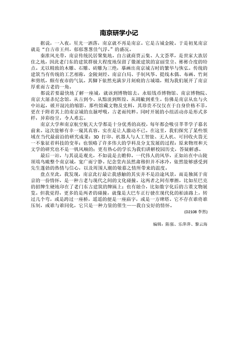 呼吸前朝古韵,对话未来科技 ——记2019年效实中学南京暑期研学行