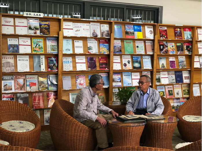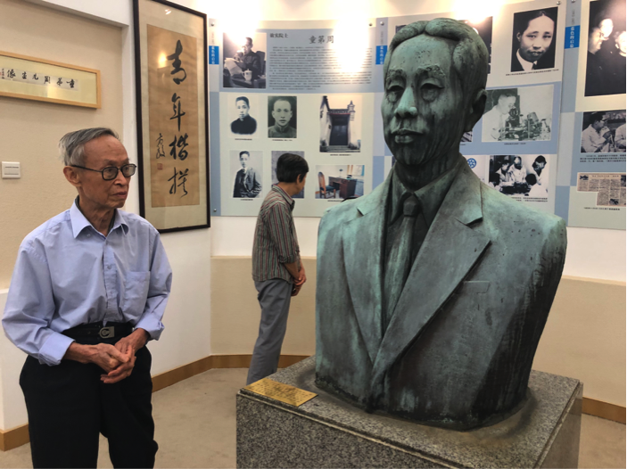 “行走的效实史”叶鸿安老书记特意带来了学校珍藏的童第周档案资料,有童第周的亲笔信、照片、文件等。在校史馆里,童教授兴致勃勃地了解了效实的历史沿革,聚精会神地倾听了叶书记讲述童第周在效实的故事。当来到从望京路一号老效实搬来的童第周铜像前,老人家垂手驻足,凝视了许久。从校史馆出来,童教授夫妇漫步在秋日的夕阳里,参观了校园。