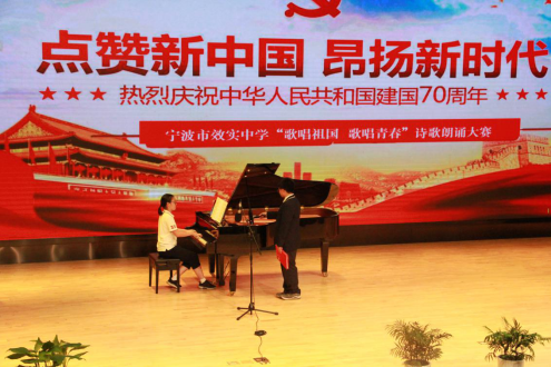 秋高气爽,金桂飘香。刚送走高中生活首月的青涩,22届新生便迎来了他们的第一个大型活动。2019年9月27日下午,效实中学东部的高一全体同学在庄严的中山厅里汇集,观看“歌唱祖国,歌唱青春”诗歌朗诵大赛。