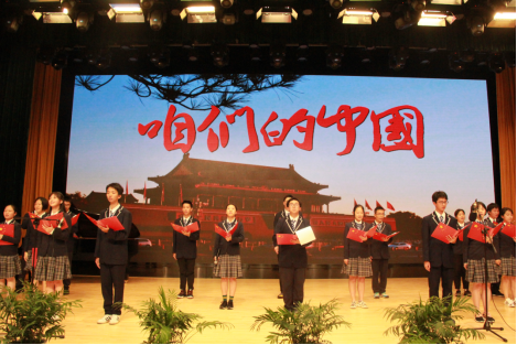 最后压轴的是D2203班。他们的《我是中国人》一路高亢,赞美我们伟大的中华民族。诗歌以“狂”“傲”“豪”三字为中心展开,包含了许多历史人物与雄伟地貌,让人感受到其中快要溢出文字的、油然而生的、对民族的无限自豪。诗句“我没有睡觉!我没有睡觉!”更是深深地烙印在所有人的心底。
