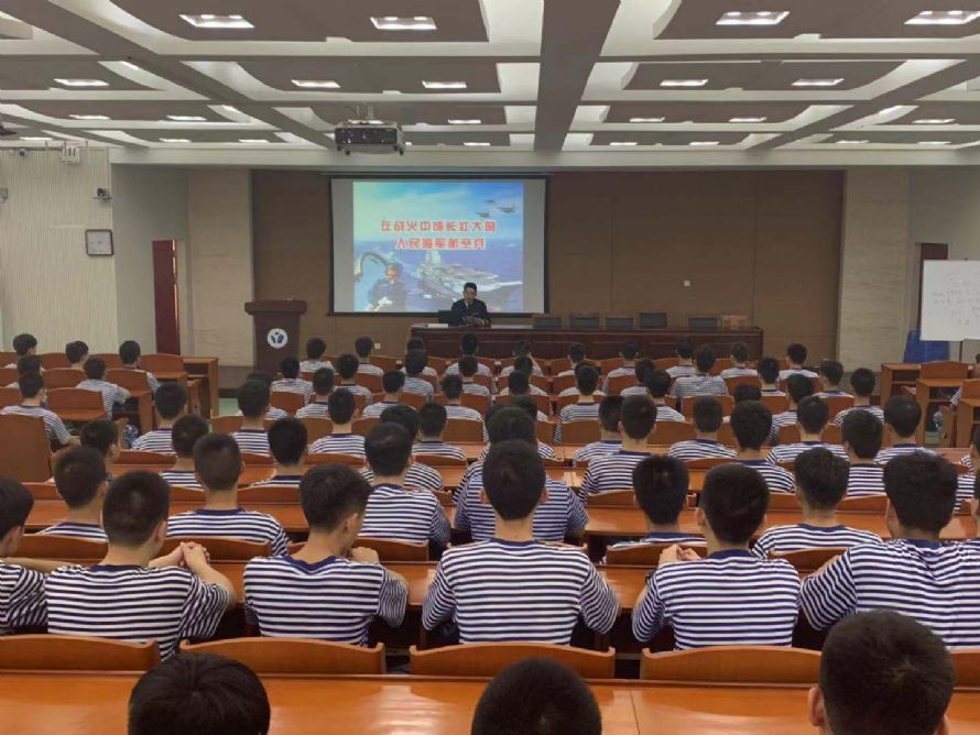 在座谈会期间,海军招飞办施干事为全体海航班学员做了《在战火中成长壮大的人民海军航空兵》专题讲座,介绍人民海军航空兵的发展历程,同时他结合自身飞行员的经历和舰载机飞行员战友的视频,勉励海航学子努力学习和锻炼身体两不误,为成为一名优秀的舰载机飞行员而不懈奋斗。