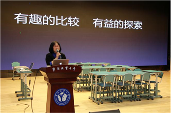 十六日下午,浙江大学比较文学专业的王玉洁博士作了《中西之间跨文化传播的发生、变异与融合》的主题讲座。王博士的讲座从比较文学的基本研究方法,中西文学的影响是如何发生的,文学的变异与融合等方面展开。在讲座中,王老师结合7堂精彩的示范课,通过耳熟能详的例子深入浅出地将原本深奥的文学理论娓娓道来。在讲座最后,王博士从自己专业的角度为在座的各位老师提供了相关专题的教学建议。例如在跨文化专题的学习前,教师应向学生简要介绍西方文学发展的总体时空脉络以及西方文学的两个源头。教师在讲解这部分内容时,可从文本内部和外部进行考察,让学生以更广阔的视野看世界、甄别美丑善恶,从而更好地融入未来社会。