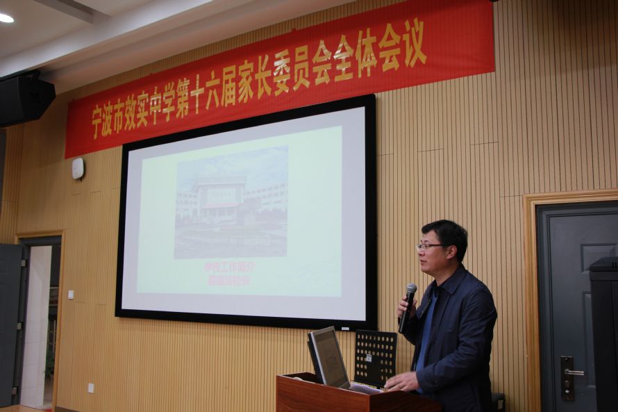 会上,裘建浩校长感谢家长选择效实,信赖效实。随后,简单汇报了学校的整体情况。面对“一校两区四部”模式,两校区要做到协调发展,既离不开老师们的兢兢业业,也得益于广大家长的支持理解。学校和家长应继续合作,帮助孩子找准个人定位,正视差异;应引导孩子点燃内驱力,在适合自己的轨道上成就最佳的自我。此外,裘校长强调,“学生培养的目标应是为大学做准备,为人生做准备”“不讲分数过不了今天,只讲分数过不了明天,要在两者间取得平衡”“孩子的身心健康比成绩更重要,育人比求知更重要”。谈到家校合作,裘校长指出,家庭和学校是教育的“合伙人”,老师和家长是天然的“同盟者”。家校保持一致的信念,学生才能得到较好的发展。家校委会应当起到交流合作的桥梁作用。传递家长的心声,传达学校的想法,监督、支持和配合学校,帮助孩子塑造良好性格和品格,整合拓展社会资源。