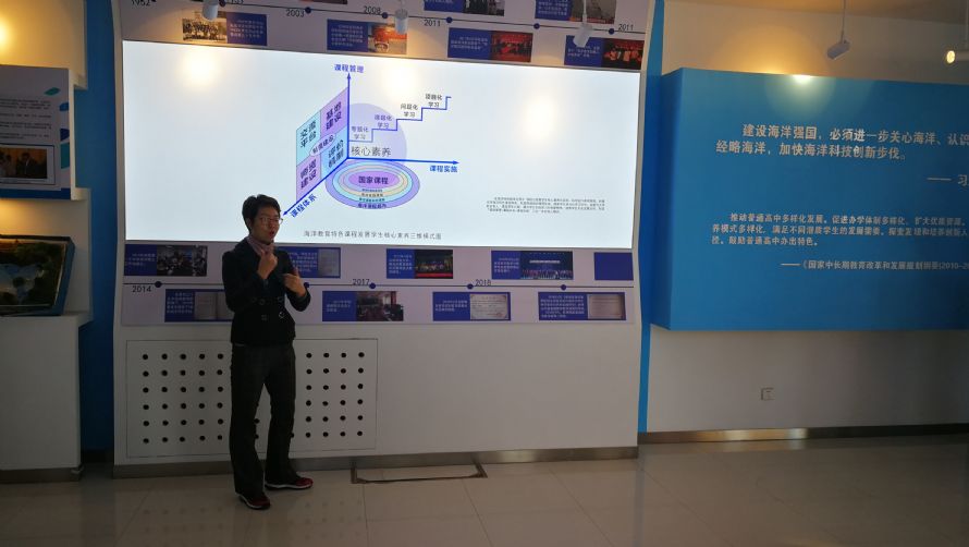 1212日,学术委员会一行首先来到青岛三十九中参观了海洋实验室、郑守仪院士实验室、海洋科教馆等海洋教育设施以及学科文化走廊。三十九中白晓歌博士、徐桂亮老师、况钎册老师在参观中介绍了三十九中在海洋教育方面的发展情况