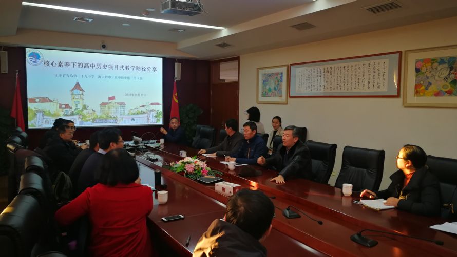 随后,校学术委员会重点考察了青岛三十九中项目式学习的改革实践情况。青岛三十九中数学教师甄晓,开设了项目式教学展示交流课,课后由衣军潼老师结合课程的开设,分享了学校数学学科项目式教学的开展情况,马国旗和顾喜阅两位老师,也分别介绍了历史、化学两门学科在项目式学习方面探索的经验做法。