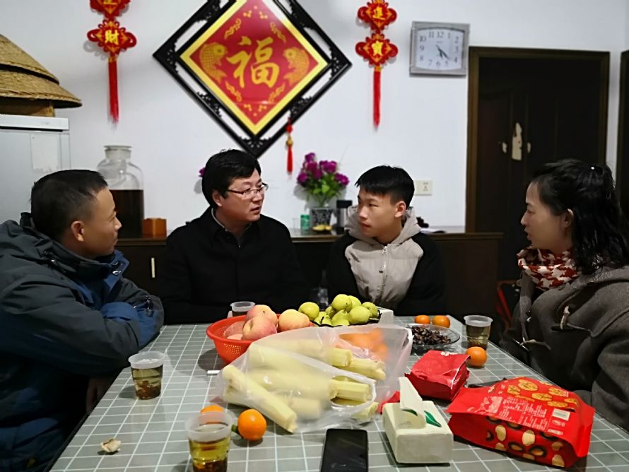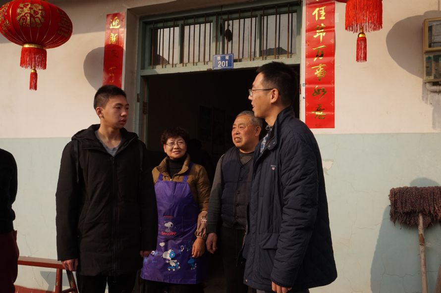 下午,老师们马不停蹄地赶赴临安,前去2011潘文杰家家访。临近春节,潘文杰一家人搬到外公外婆家小住。小院里挂着刚腌制好的咸肉,厅门两边贴着崭新的春联,年味十足。在交流过程中,老师们了解到原来潘文杰外公是一位退役军人,客厅里就悬挂着表彰军人家庭的光荣之家牌,潘文杰报考海航班一定程度上也受到了外公的影响。外公对孙儿励志海航非常自豪,反复训导他不要怕吃苦,要勇敢拼搏,潘文杰一一应允。入校以来,潘文杰的成绩一直稳定地处于班级上游,起到了良好的示范作用。他志存高远,希望自己不仅能够顺利考上海航大,还能获得双学籍培养的资格。孙立副校长肯定了潘文杰的在校表现,和他探讨了学习计划,希望潘文杰能够稳中求进,寒假劳逸结合,既要努力学习,也要兼顾体质健康。