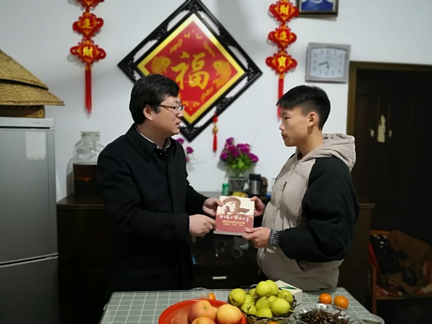 老师们先来到嘉兴海盐2107 班吴金金同学家中,向吴金金赠送了书籍,并与家长进行了交流。刚走进吴家,一面照片墙便吸引了老师们的目光。墙上的相框里定格着吴金金从小到大参加各类文体活动的精彩瞬间,也体现出父母对孩子的重视。吴妈妈说孩子一直特别热衷参加校园活动,对待学习则有些不够专注。孙立副校长肯定了吴金金在学生活动中的出色表现和组织能力,赞许了他对学生会志愿者部的一片热忱,也指出了他在学习习惯上存在的不足,强调要更好地平衡活动与学习,激发自身潜力。班主任冯琪老师特别就政治学科的学习方法做了介绍,希望吴金金能在学考选考中发挥出色。