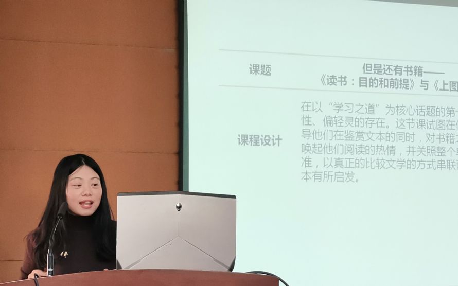 课后,大市教坛新秀吴蓉老师和潘瑶菁老师就新教材必修上册第六单元的《读书:目的和前提》和《上图书馆》,分享了教坛新秀评比中拿到教材后备课、上课的过程和课后的反思。