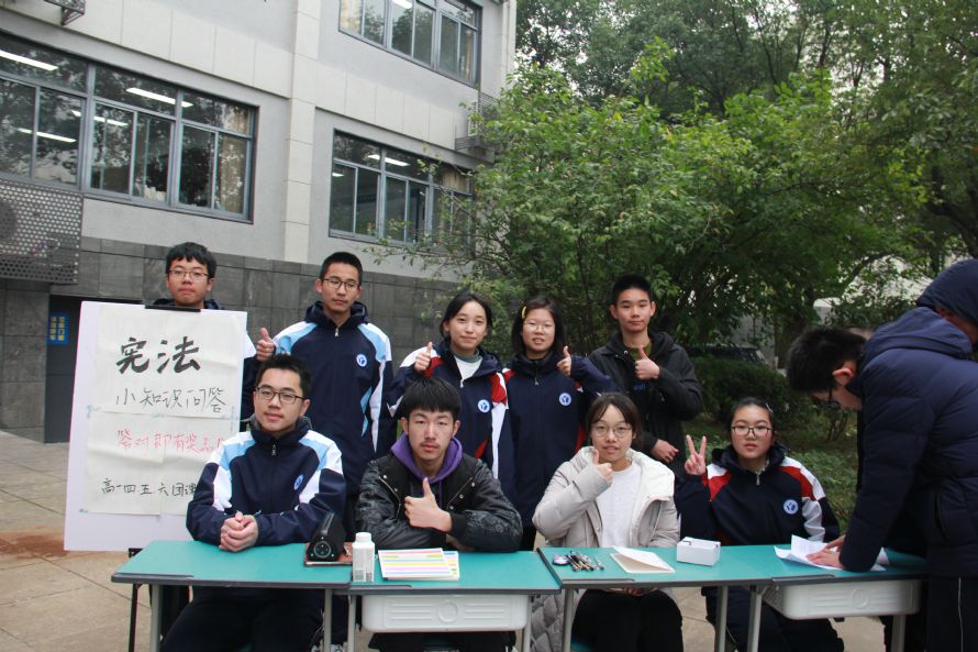 周三和周四,高一和高二的同学们分小组组织实践活动。高一同学以法制宣传为主题开展路演活动,通过演出、有奖竞答、宣讲、视频、调研等方式在校园里开展法制宣传活动。高二同学则自选主题,带来了关于法制的微型党课,将身边的例子与时事热点结合,引发大家的深刻思考。